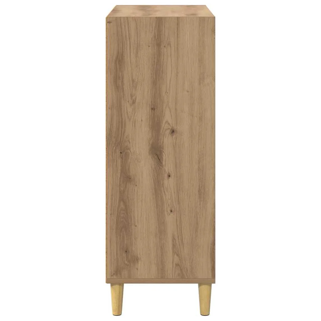 Tento trendy garderobník z kompozitného dreva skvele kombinuje príťažlivý vzhľad a praktickosť, čím zlepší tvoje obytné priestory. Je ideálny pre moderné domy a ponúka hladký dizajn s dostatočným úložným priestorom. Nezáleží na tom, či ho dáš do jedálne alebo obývačky, perfektne sa hodí do akéhokoľvek interiéru. Hladký a nepriehľadný povrch dodáva decentný vzhľad, zatiaľ čo zadná strana vyzerá dobre aj samostatne. Zúžené nožičky pridávajú moderný šmrnc, ktorý oživí každé miesto.